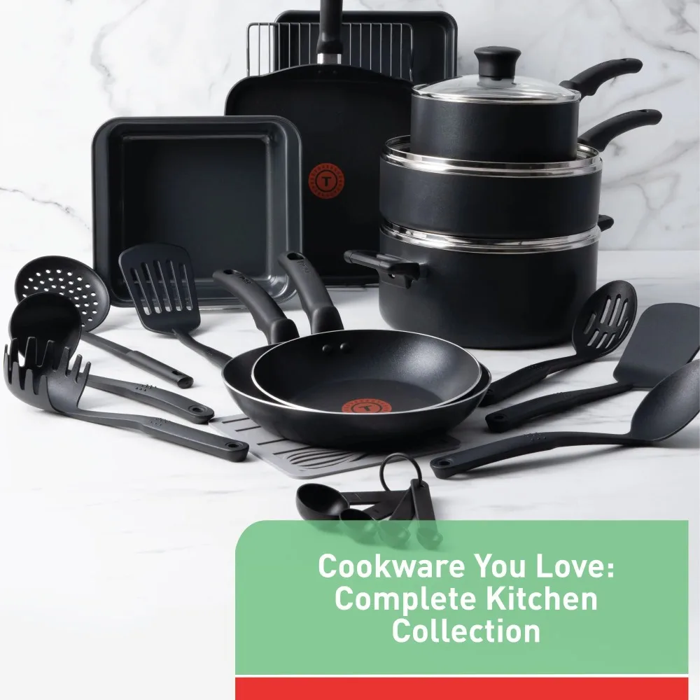 T-fal Kitchen Solutions 21-Piece Nonstick Cookware Set, Black kitchen cookware set pots and pans set cookware cookware set
