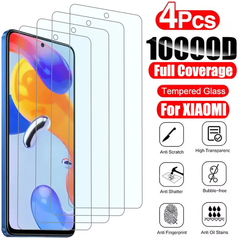 9H 4PCS Tempered Film For Xiaomi Redmi Note 10 11 9 8 7 Pro 9A 9C 8A 7A Glass Protective Glass For Redmi Note 10 9 10S 8 7 8T