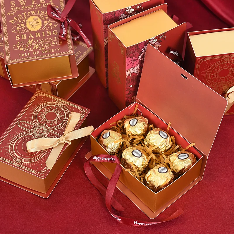 5Pcs Creative Book Shape Wedding Gift Box for Guest Paper Candy Chocolate Dessert Packaging Boxes Baby Shower Birthday Gift 13cm