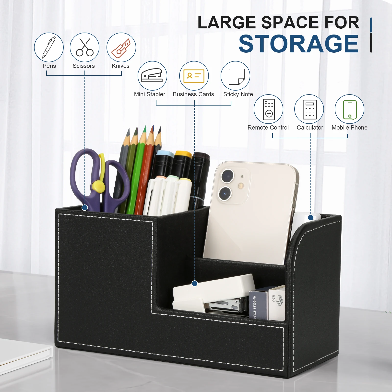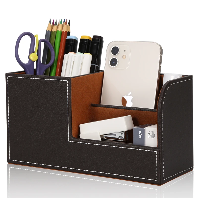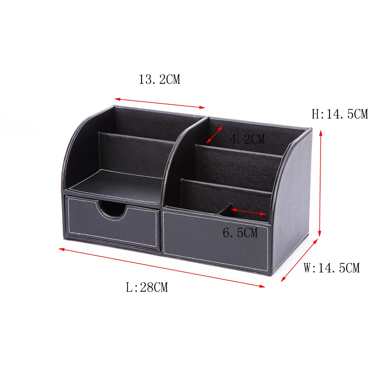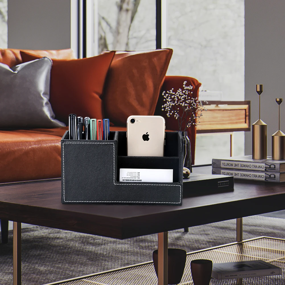 Home Office Desk Organizer PU Leather Storage Box Pen Pot Pencil Holder Remote Control Box Name Card Holder Stand