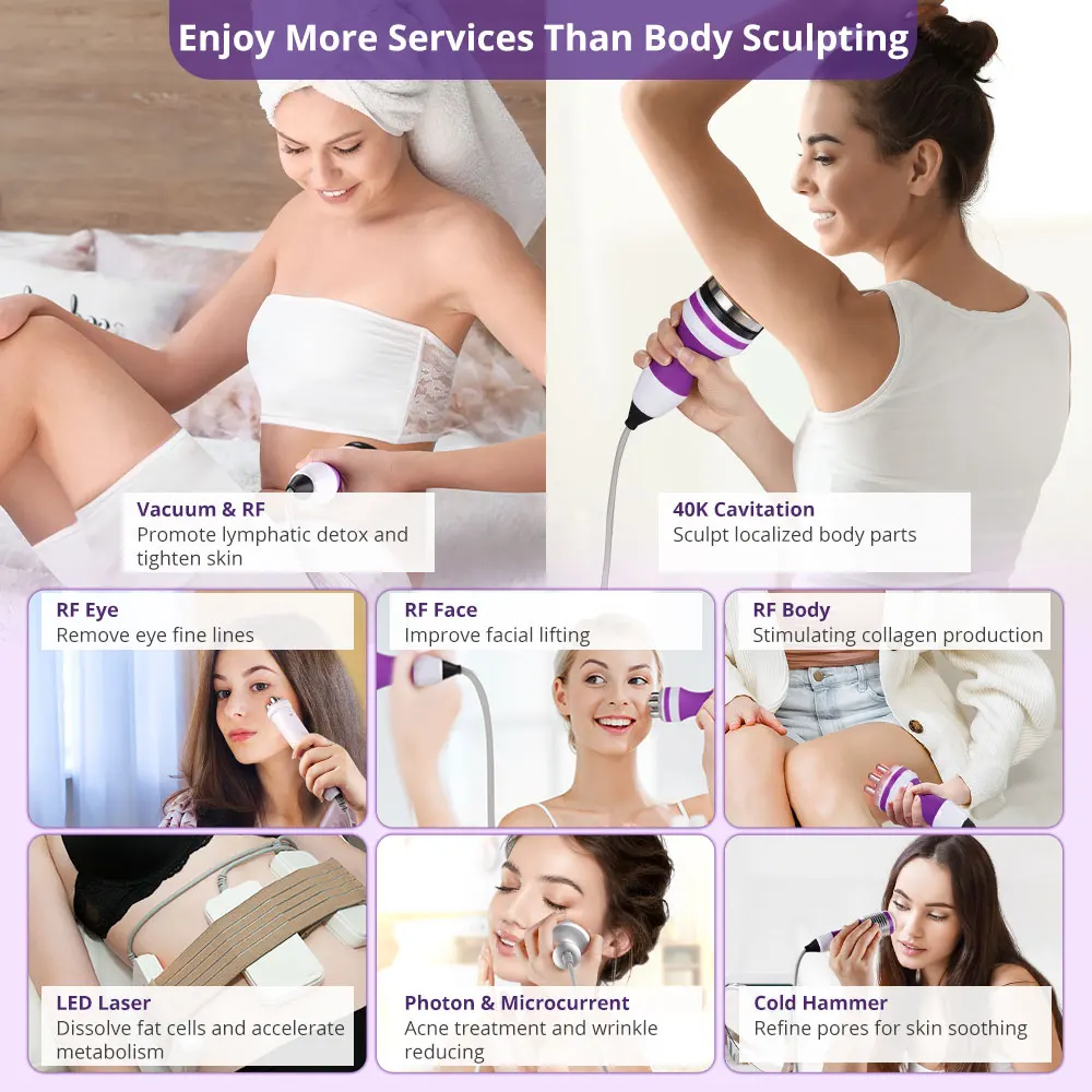 Mychway 9 In 1 40k Cavitation Machine Vacuum Body Slimming Fat Burner Wrinkle Removal Multifunctional Beauty Device