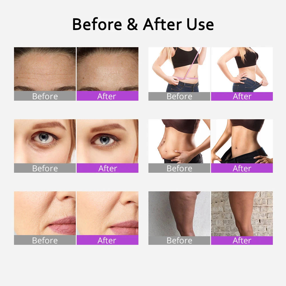 Firming the arms, legs, thighs, buttocks, waist, back, abdominal muscles and reshape the body figure Improve and treat the orange peel like fatty tissues of different serious levels With the effects of soothing, decompression and pain relief (such as joint pain, sciatica), promote the regular mechanical aerobic exercise of skin tissue, rapidly relieve stress and remove fatigue. Firming, lifting and compact the skin and mould the face shape circulate and activate cells, promote metabolism and so that 100% more collagen and elastic fibers may be gained for improving the facial and body skin.