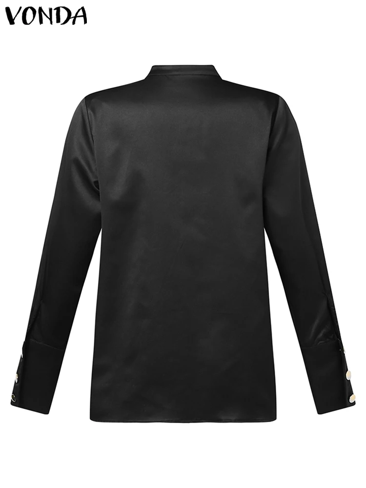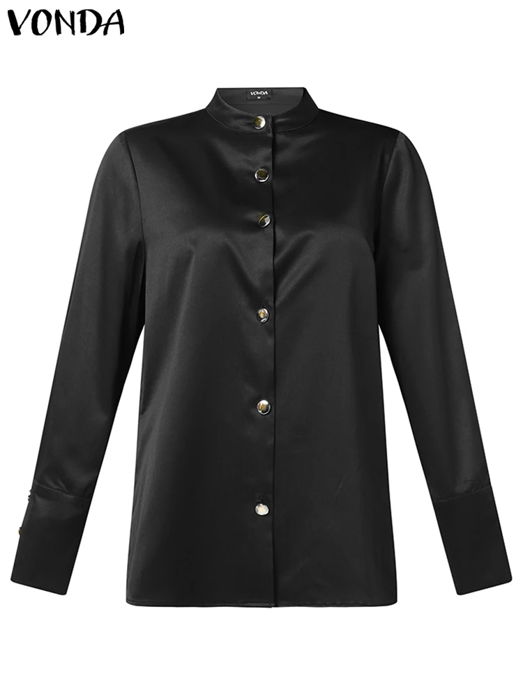 VONDA Women Elegant Shirts 2023 Autumn Long Sleeve Buttons Stylish Tops Stand Collar Casual Solid Color Office Blusas Femininas
