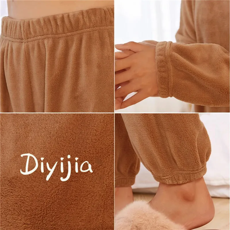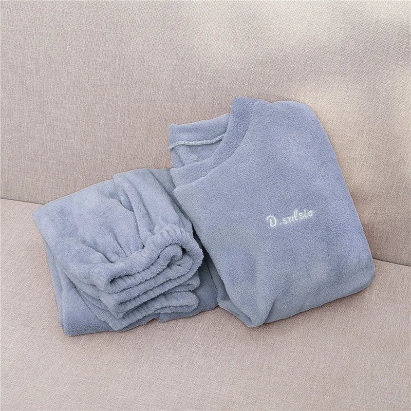 Winter Women Pajamas Solid Set Woman 2 Pieces Sleepwear Pajama Home Clothes Wear Velvet Pants Nightwear Trouser Suits