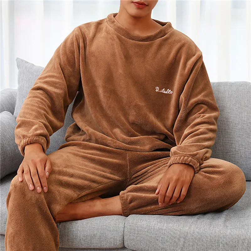 Winter Women Pajamas Solid Set Woman 2 Pieces Sleepwear Pajama Home Clothes Wear Velvet Pants Nightwear Trouser Suits